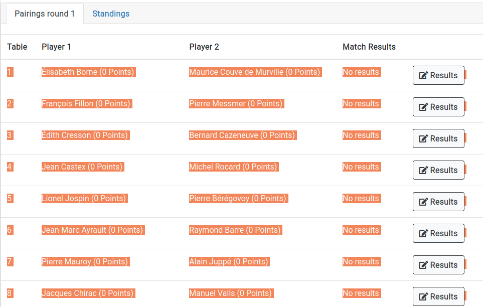 - Click on "Generate pairings" or "Generate match slips"
